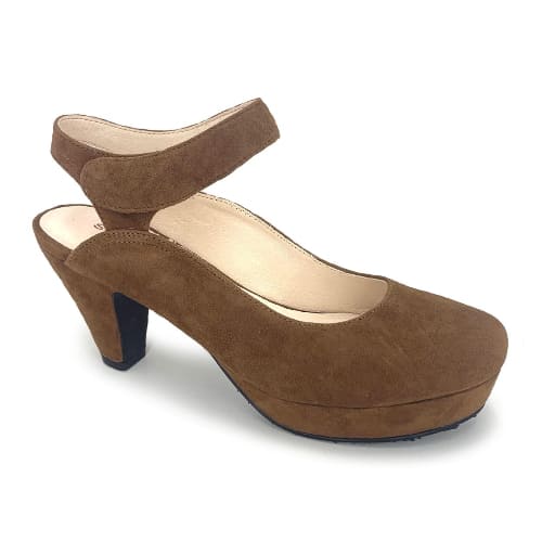 A bold platform heel that combines retro-inspired design with modern comfort, featuring a sturdy block heel and available in classic brown.